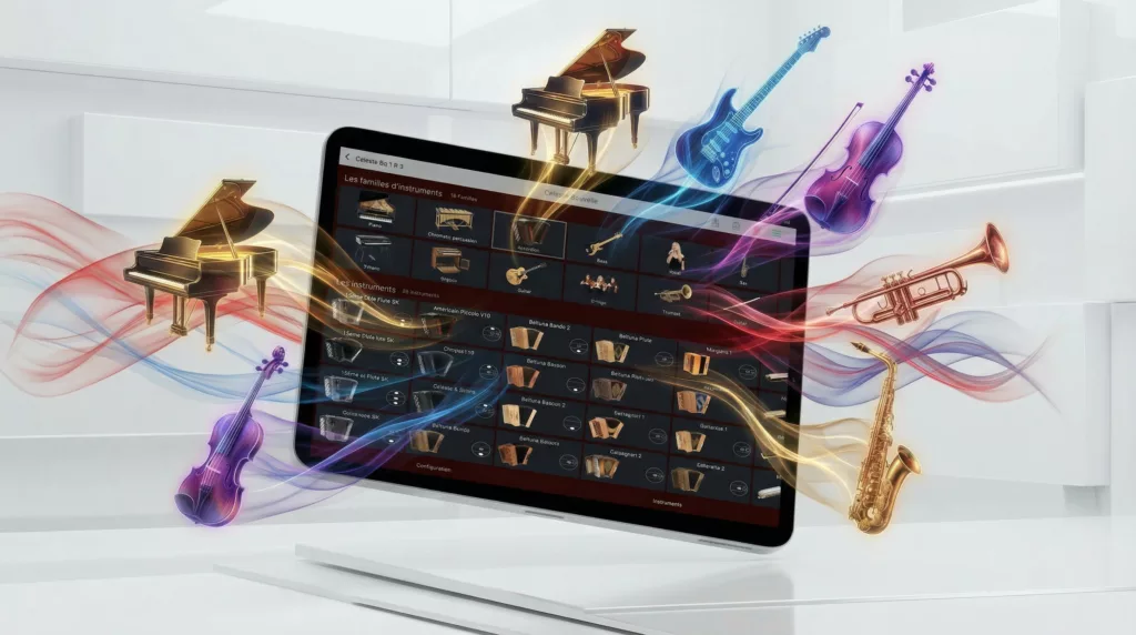 Le Digit AiR Millenium regroupe des dizaines de sons d’accordéon, échantillonnés sur nos meilleurs instruments et pas que ! Retrouvez les timbres emblématiques de Marcel Azzola, Éric Bouvelle, Richard Galliano et bien d’autres. Chaque modèle, des anciens aux actuels (Professionnel 8, Vedette 10, Steirisch, etc.), est à votre portée. Que vous jouiez jazz, musette, folk ou classique, le Digit AiR Millenium s’adapte. Les symboles de voix sont clairs et le modèle d’accordéon s’affiche directement sur l’iPad. Simplicité et polyvalence, tout simplement.